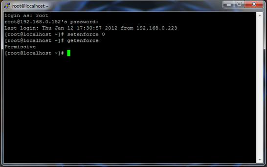 The setenforce 0 command only sets permissive mode until the system is rebooted. After a reboot the SELinux will be back to enforcing. In order for permissive mode to persist through a reboot the /boot/grub/grub.conf file will need to be modified. Be sure to back up the file before editing.